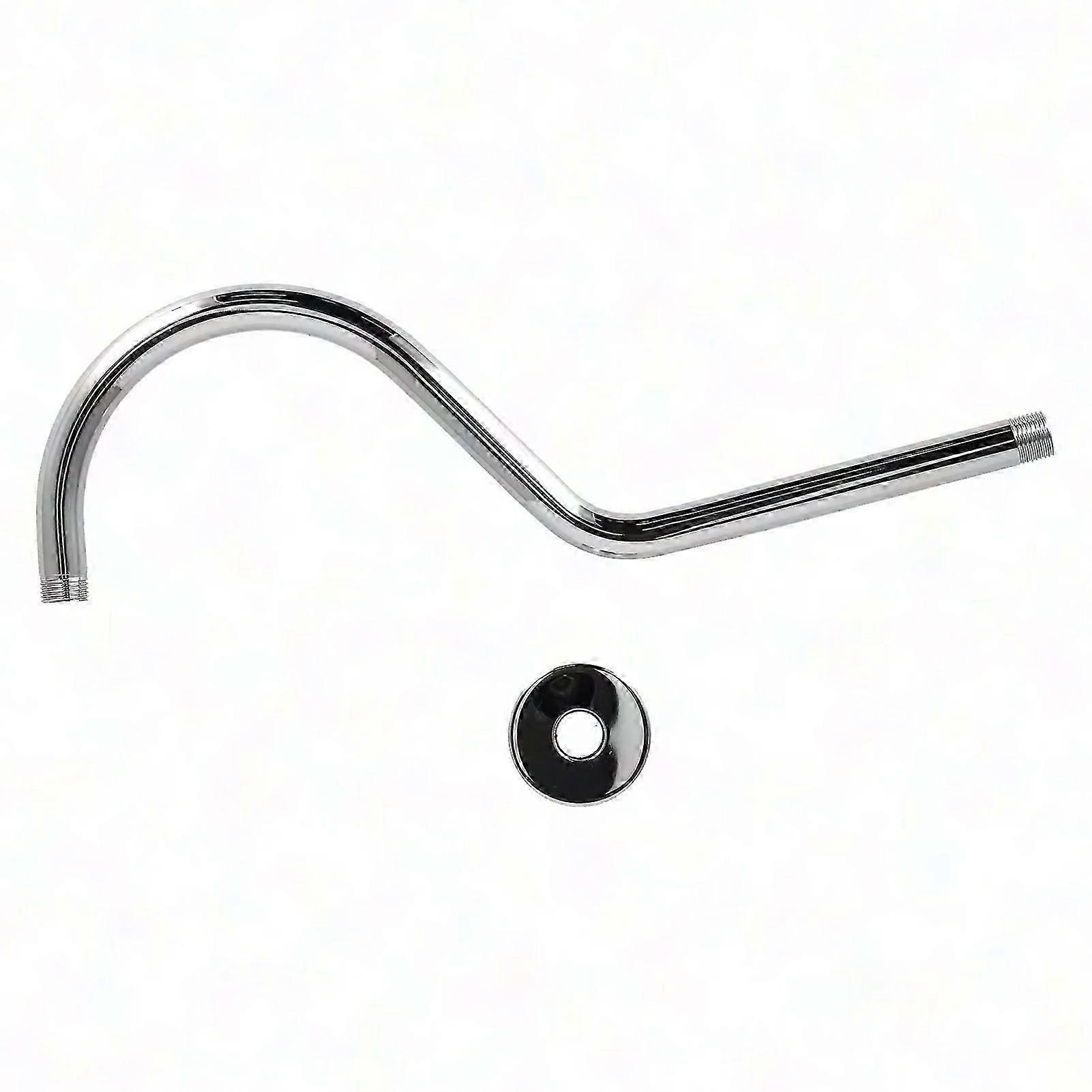 17in S-Shaped Gooseneck Shower Head Extension, Brushed Stainless Steel, NPT Connection