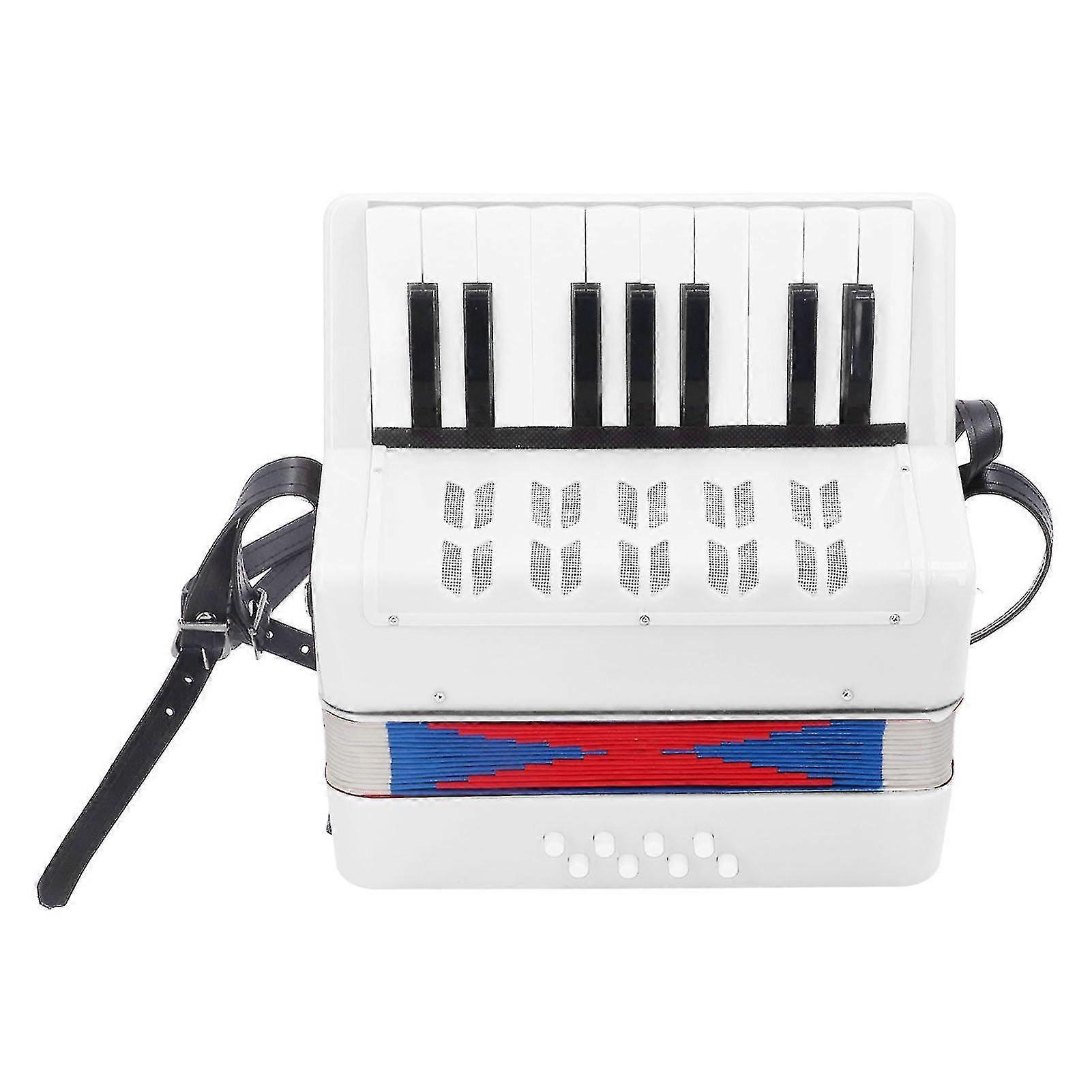 17 Keys 8 Bass Keys Piano Accordion - Entry Level, ABS Material, Portable with Retractable Strap - White Gift