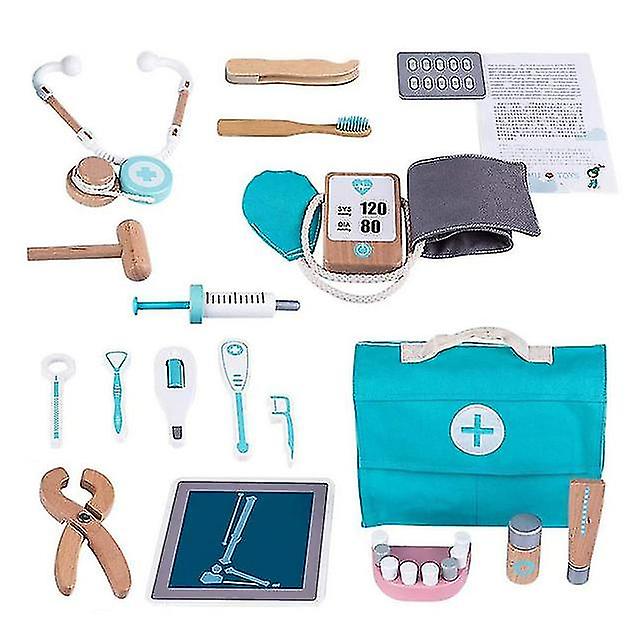 17Pcs Set Children Wooden Doctor Case Role Play Pretend Toy Set With Stethoscope Otoscope And Dental Mirror Toy Kids Gifts