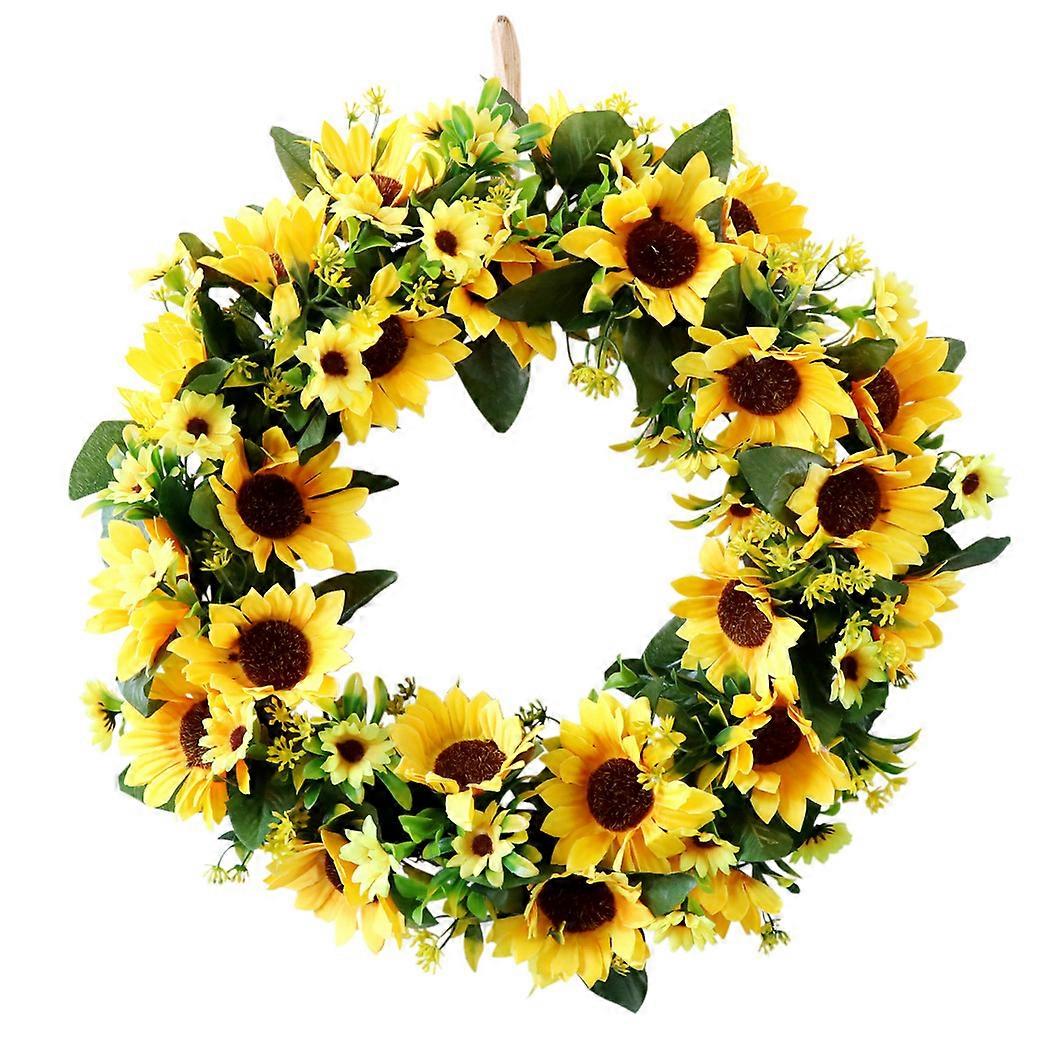 17" Artificial Sunflower Wreath Front Door Wreaths Yellow Flower Wreath Fall Indoor Outdoor Door Wall Wreath Ornament Window Decorations Hanging Garla