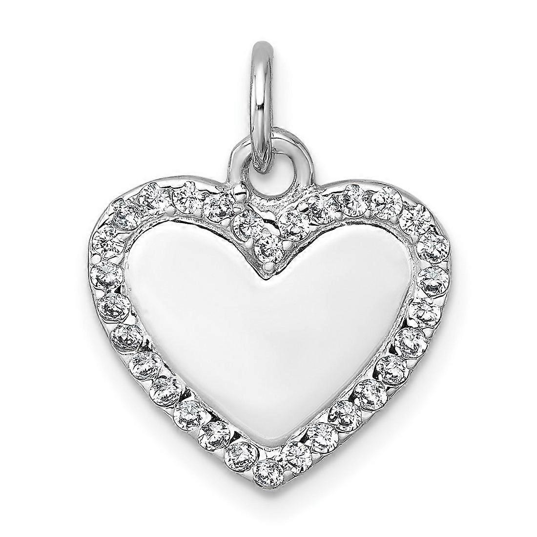 17.2mm 925 Sterling Silver Rhodium Plated Polished Cubic Zirconia Love Heart Pendant Necklace-Pendant for Women