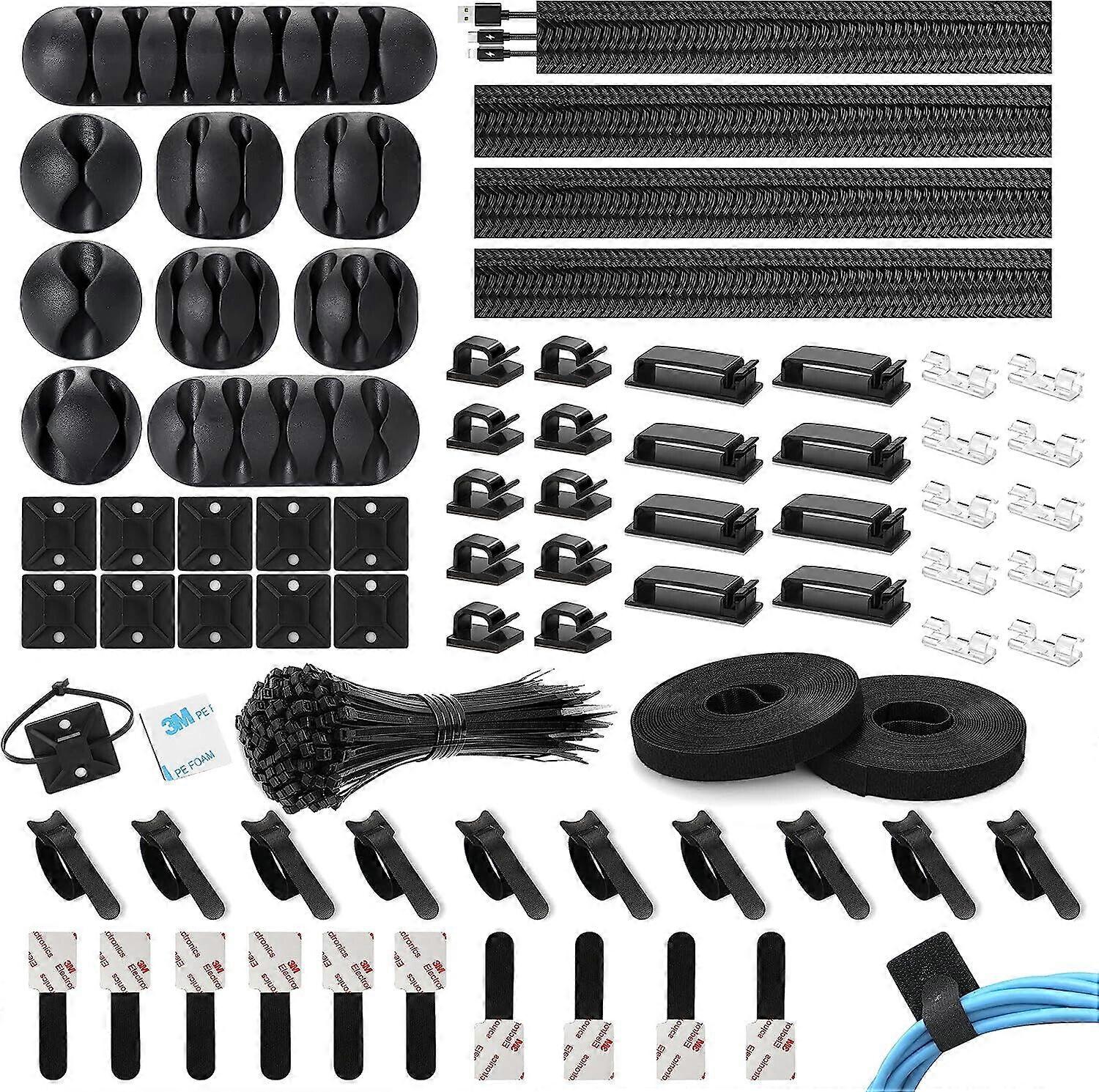 173 Pcs Cable Management Kit Wire/Cord Organizer Zip Ties Holder Clips Adhesive