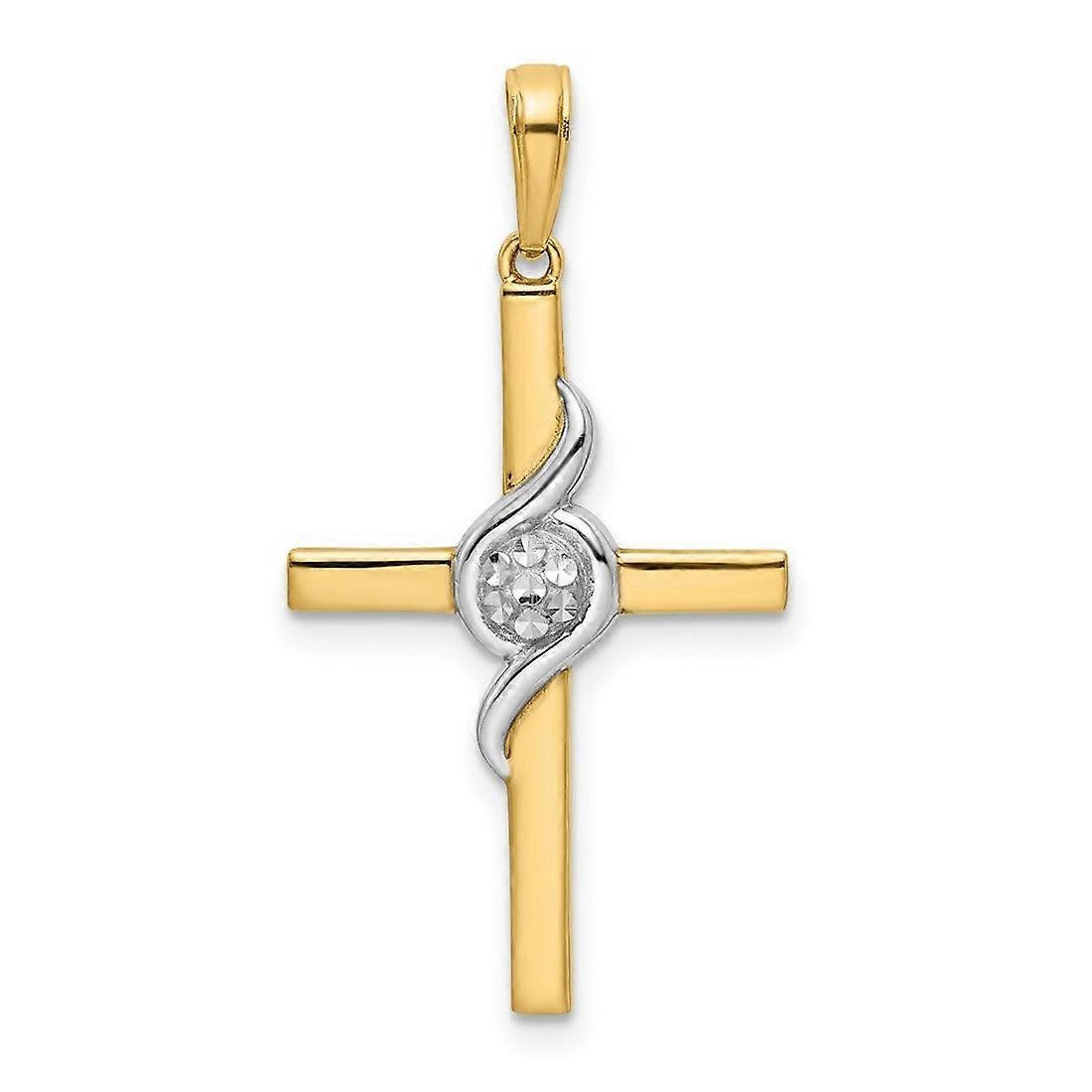 17.47mm 14k With Rhodium Sparkle Cut Religious Faith Cross Pendant Necklace-Pendant for Women