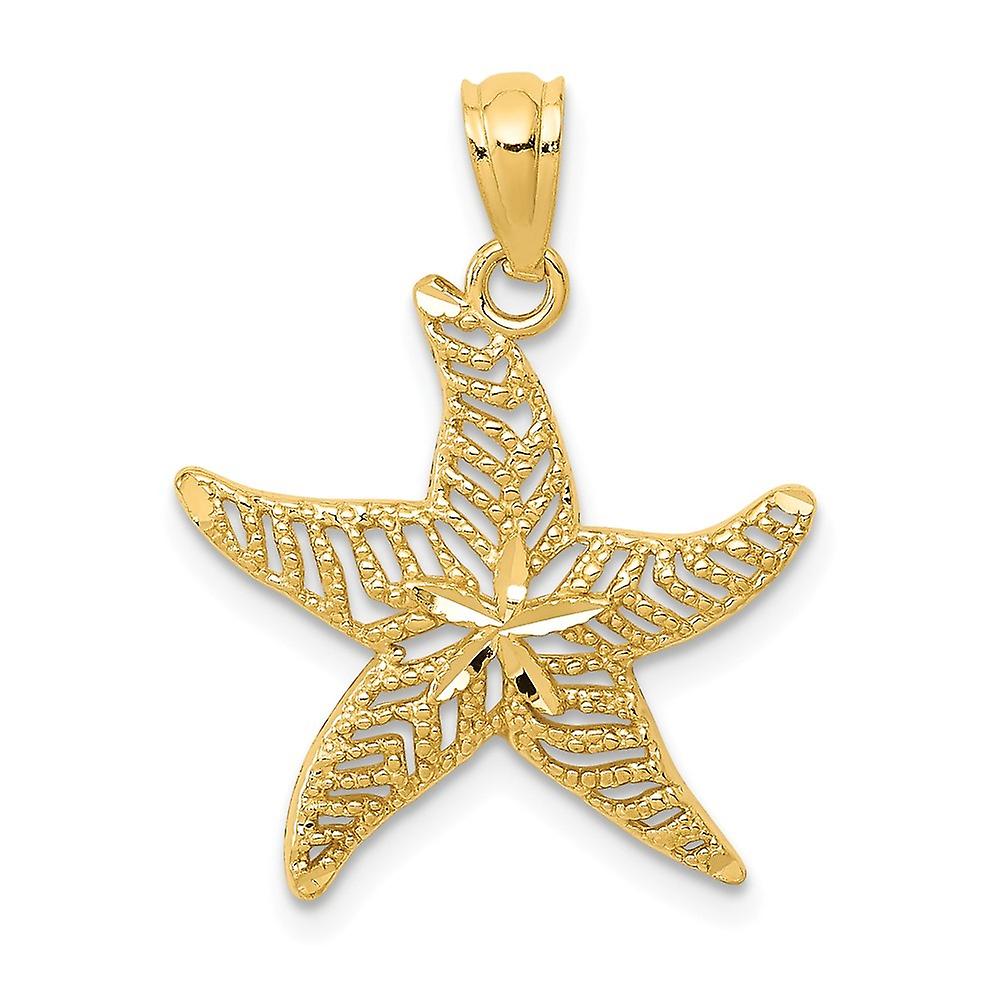 17.5mm 14k Solid Yellow Gold Sparkle Cut Polished Filigree Sea shell Nautical Starfish Pendant Necklace-Pendant for Wome