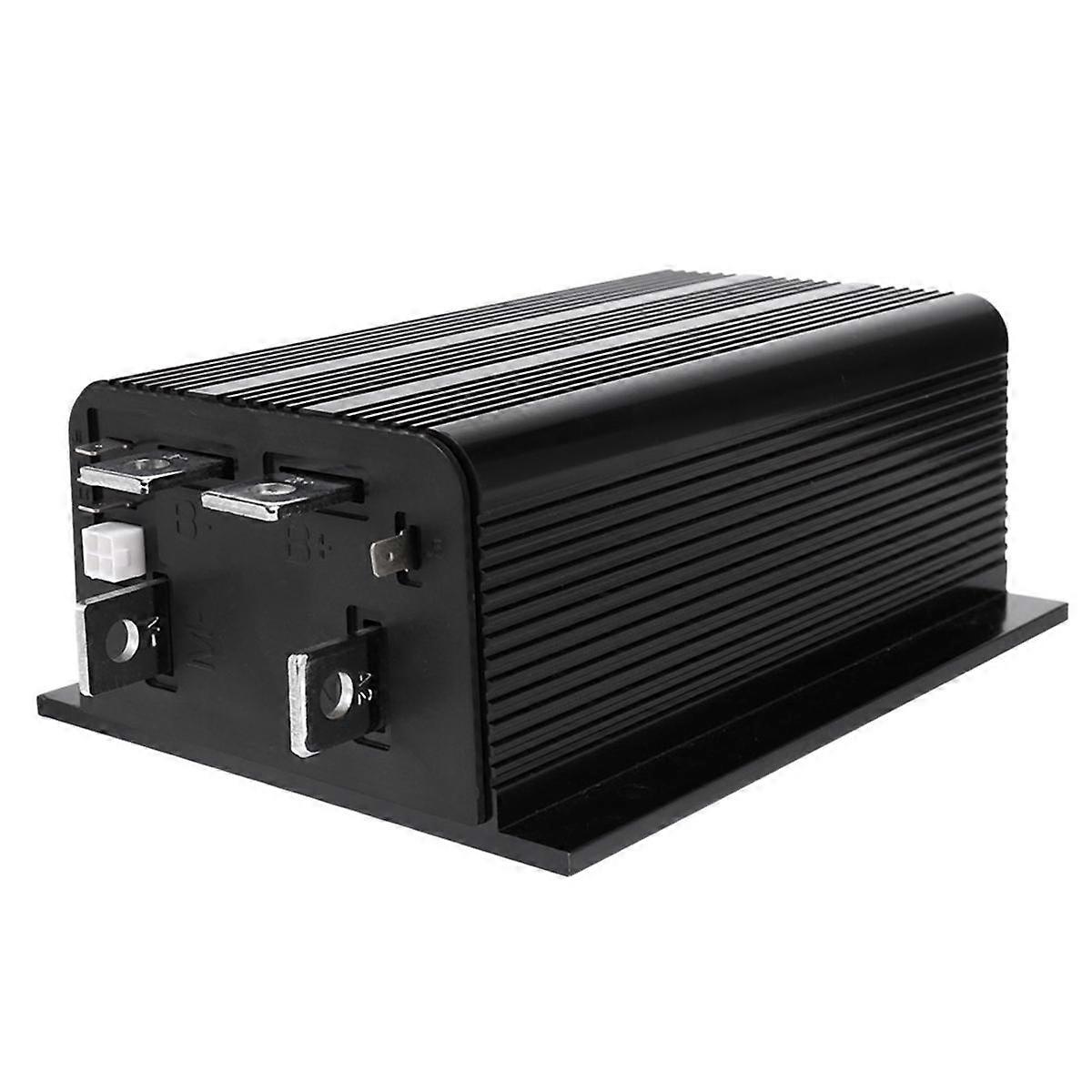 High-frequency switching and ultra-low voltage provide high efficiency and silent operation. Simple mounting and wiring with push-on connectors for control signals and plated solid copper buses for . Compatible with either a two-wire potentiometer or a voltage throttle. Throttle fault protection circuitry disables controller if throttle wires become open. High pedal disable feature prevents controller operation if key is turned on while throttle is applied. Plug diode internal to controller. Thermal protection and compensation circuit provides constant current limit over operating range and during under/over temperature cutback; no sudden loss of power under any thermal conditions. Undervoltage cutback function protects against low battery voltage, including low voltage caused by external loads. Easily programmable through the Model 1313-4431 Handhold Programmer or 1314-4402 PC Programming Station. Rugged anodized aluminum extruded housing meets IP65 environmental sealing standards for use in harsh environments. SPECIFICATIONS: 1205M-6B403 CONTROLLERS Nominal input voltage: 60/72 V (1205M-6B403 has two available battery voltage settings. The voltage can be set to either 60 volts or 72 volts.) PWM operating frequency: 15.6 kHz Electrical isolation to heatsink (min.): 500 V input current (no contactors engaged): Less than 70 mA without programmer; Less than 130 mA with programmer Logic input current: Less than 2 mA Status LED output current (max.): 2 mA Throttle type: 2-wire 0 - 5kohm, 2-wire 5kohm - 0, or 0 - 5V Storage ambient temperature range: -40Celsius to 85Celsius (-40Fahrenheit to 185Fahrenheit) Operating ambient temp. range: -40Celsius to 50Celsius (-40Fahrenheit to 122Fahrenheit) Package environmental rating: ISTA2A; electronics sealed to IP65 Colour:black Material:Metal+ABS Package Contents: 1 x Motor Controller Only the above package content, other products are not included. Note: Light reflection and different displays may cause the color of the item in the picture a little different from the real thing. The measurement allowed error is +/- 1-3cm.