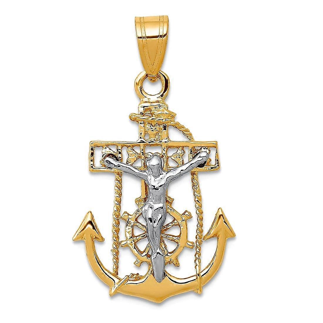 17mm 10k Solid Gold Two tone Mariners Religious Faith Cross Pendant Necklace-Pendant for Women