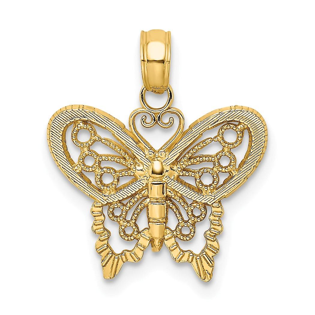 17mm 14k Gold Butterfly Angel Wings Cut out / High Polish Charm Pendant Necklace for Women