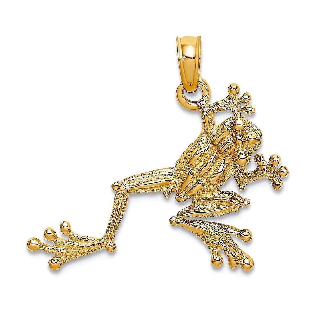 17mm 14k Gold Frog With Textured and Extended Left Leg 2 d Charm Pendant Necklace for Women