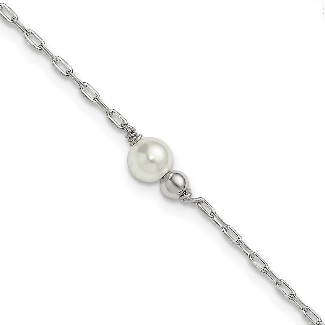 1.7mm 925 Sterling Silver Polished Bead and Glass Pearl Plus 1in Extension Anklet 9 Inch-Anklet for Women