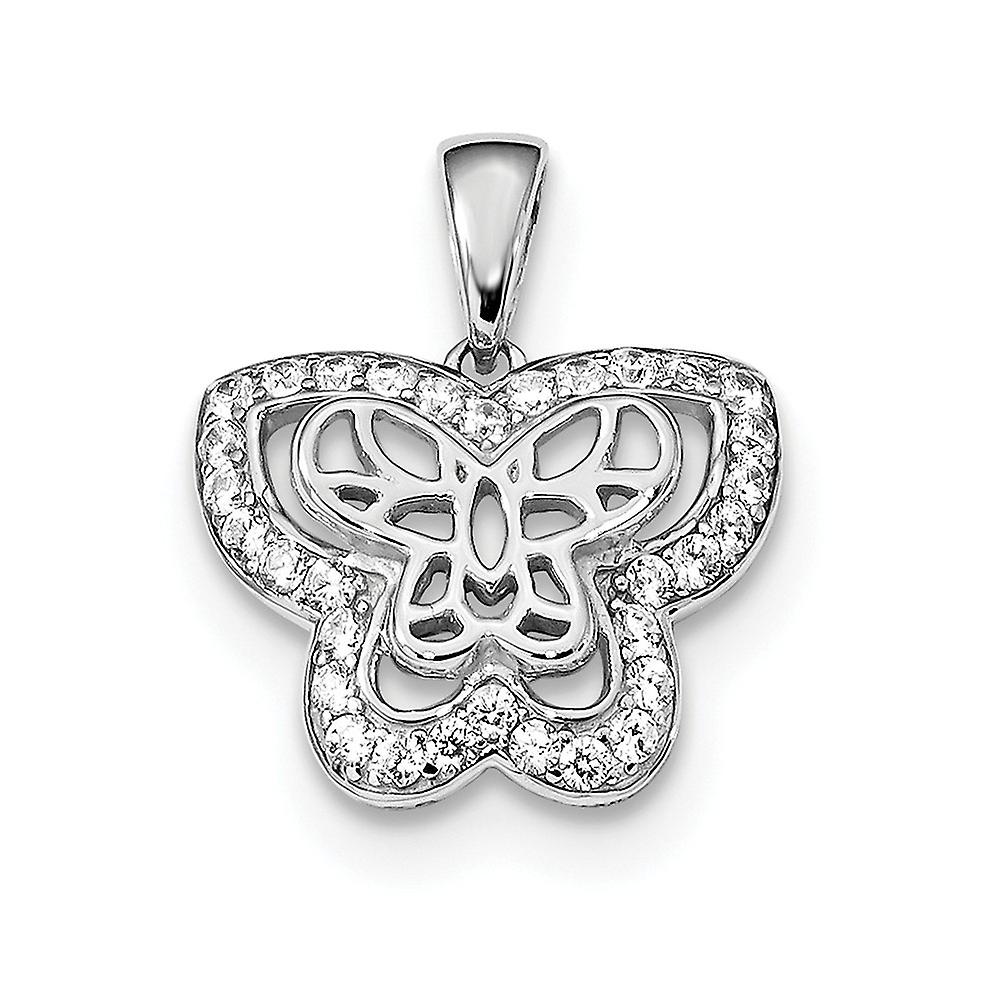 17mm 925 Sterling Silver Rhodium Plated Polished With Cubic Zirconia Butterfly Angel Wings Pendant Necklace-Pendant for