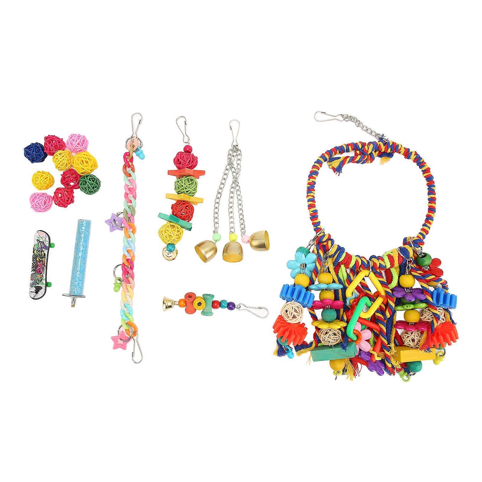 17pcs Bird Cage Swing Toys Colorful Fun Parrot Swing Toys Set for Finch Budgie Parakeets Cockatiels Conures