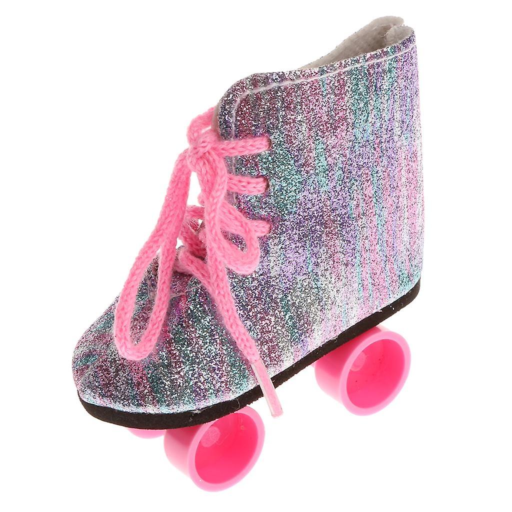 Pair of Lace Up Rainbow Roller Skates Shoes for 18inch Girl Dolls