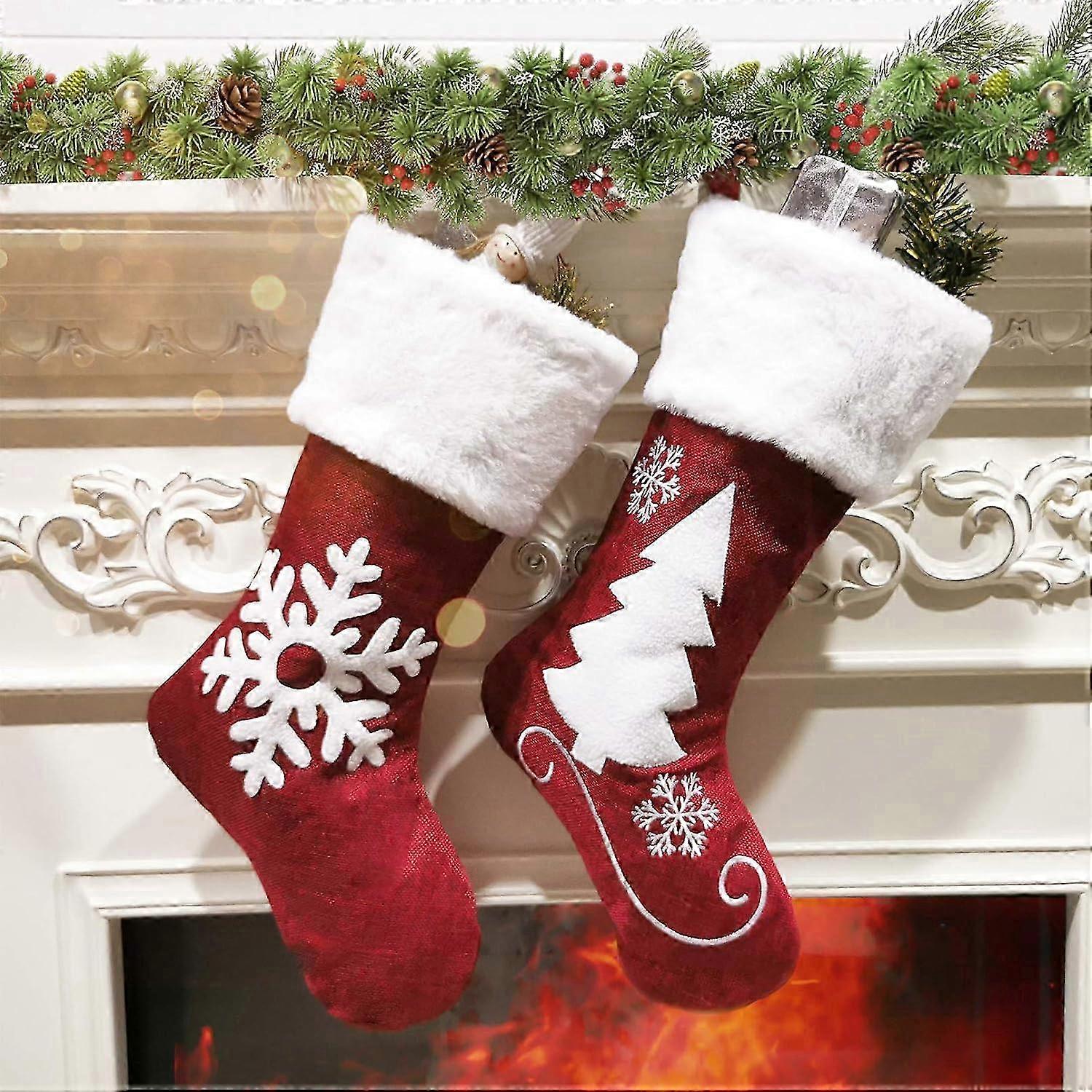 18-Inch Christmas Stockings Set of 4, Suitable for Holiday Decor, Burlap Design with Large Plush Cuff