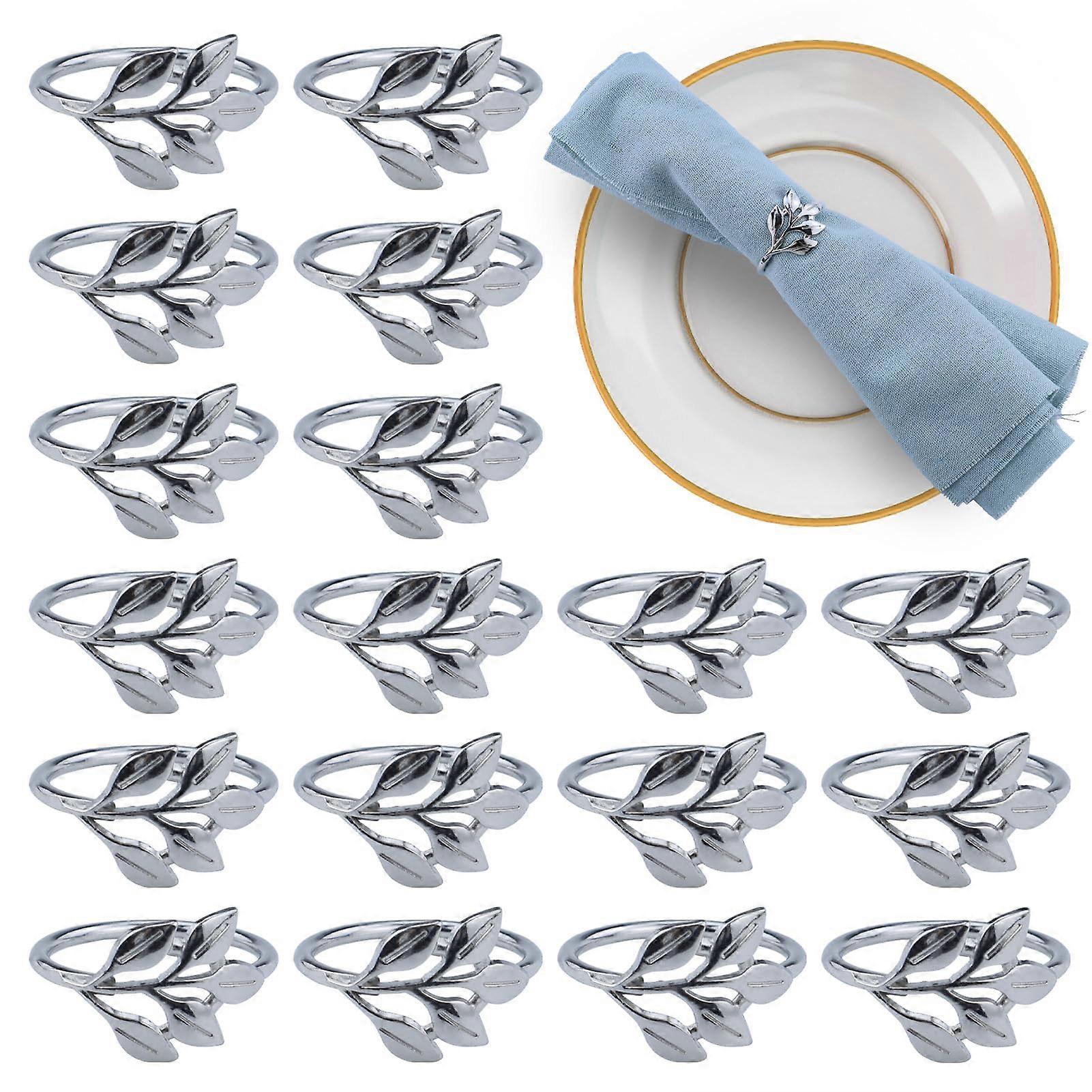 Pack of 18 Napkin Rings Silver Napkin Rings Leaves Napkin Buckles with 5 Leaves Napkin Ring for Parties, Thanksgiving, Weddings
