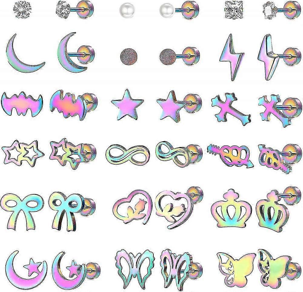 18 Pairs Stainless Steel Cartilage Stud Earrings For Women Men Butterfly Star