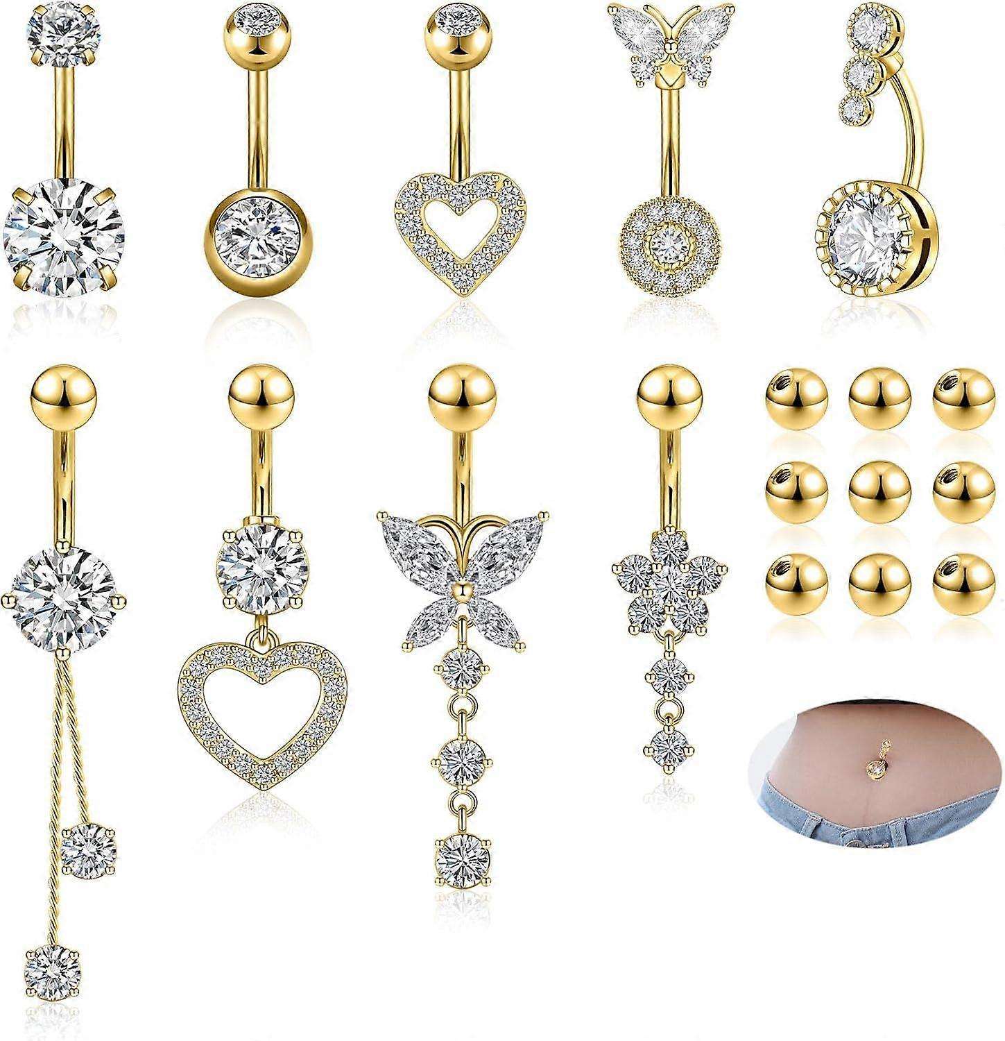 18pcs Belly Button Rings 14G 1.6MM Stainless Steel Navel Rings Belly Button