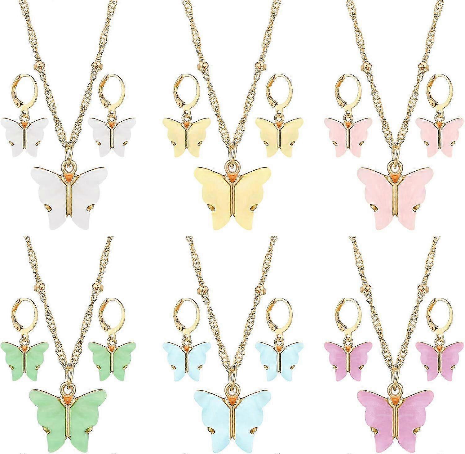 18 Pcs Acrylic Butterfly Jewelry Set, Colorful Pendant Necklace and Hoop Earrings 2025
