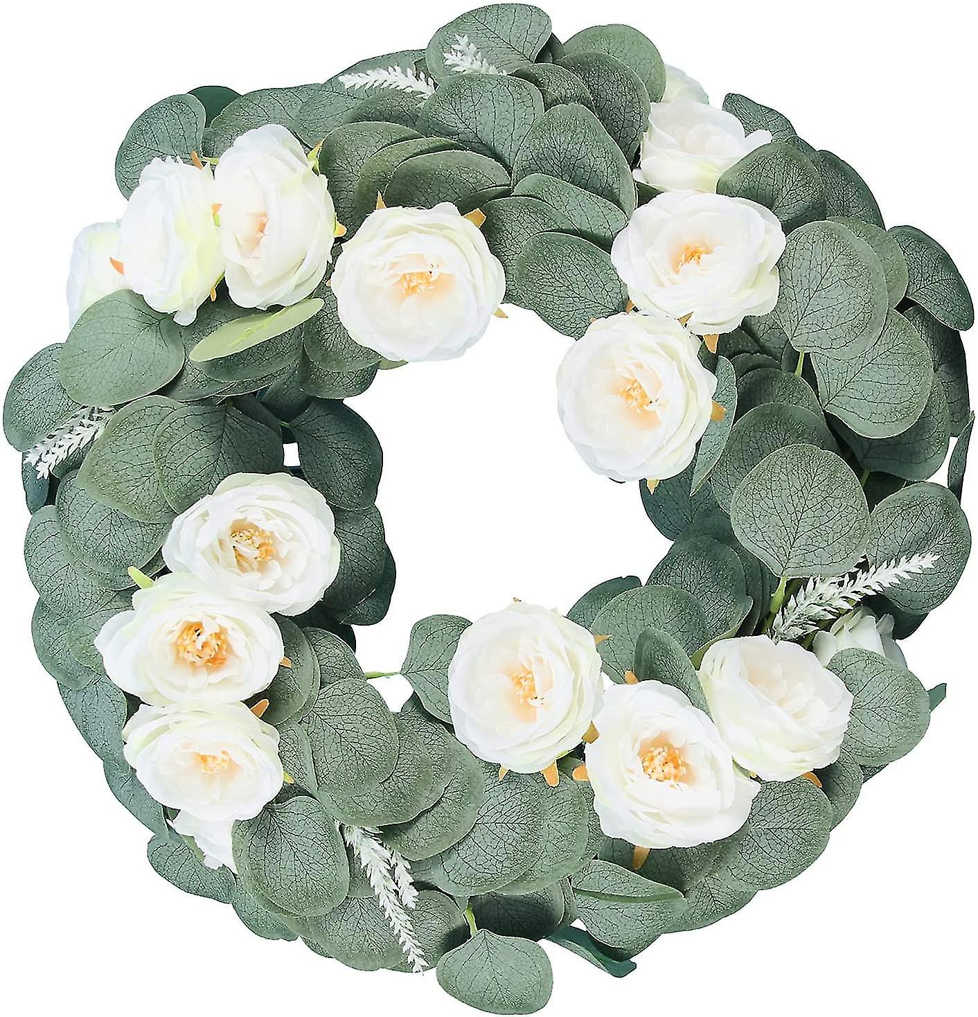 18" Farmhouse Wreaths Artificial Rose Summer Wreaths Eukalyptus Front Door Wreath