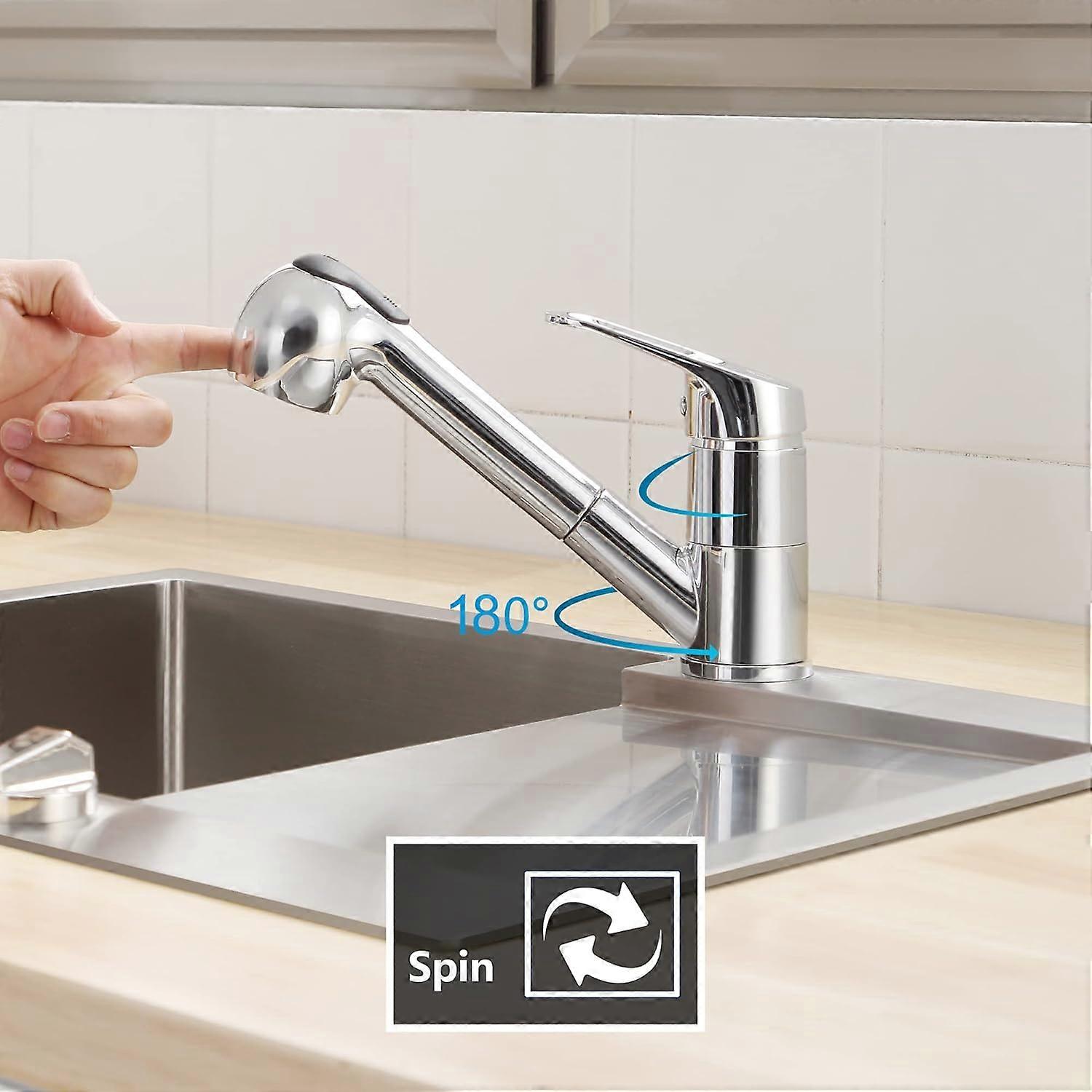 180 retractable kitchen tap, high-pressure with 2-mode adjustable water jet, chrome sink tap, single-lever mixer tap. High-gloss silver