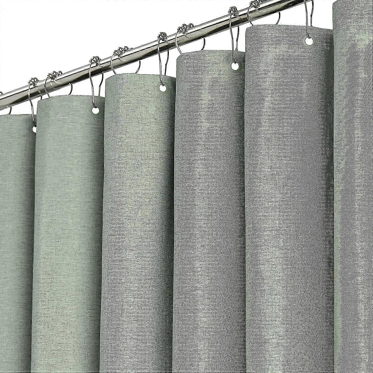180 X 200 Cm, Sage Green Long Shower Curtain, Linen Textured Heavy Fabric Shower Curtain Set With 12 Plastic Hooks, Neutral Waterproof Polyester Bath-