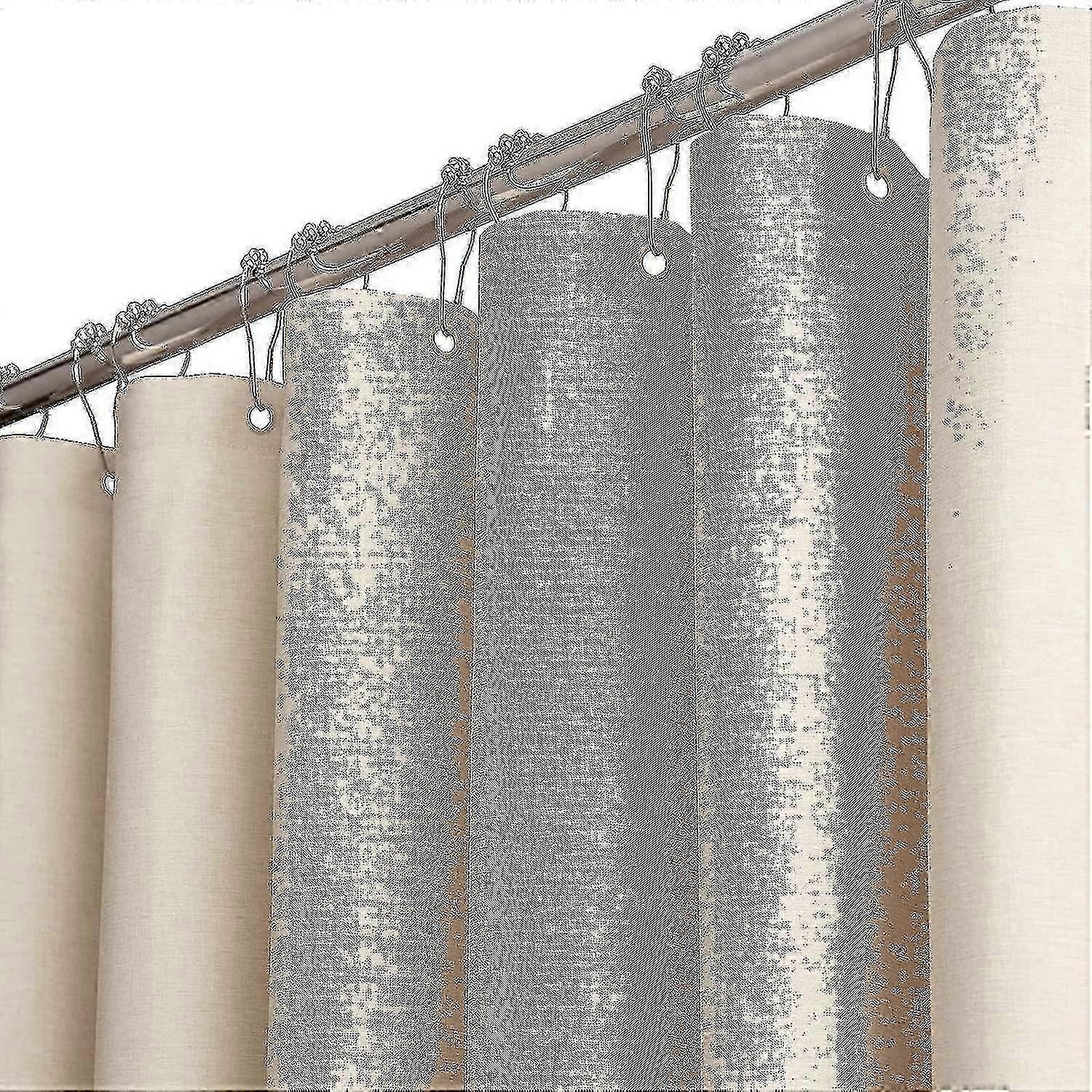 180 X 210 Cm, Beige/cream Extra Long Fabric Shower Curtain, Linen Textured Heavy Duty Fabric Shower Curtain Set With 12 Plastic Hooks, Luxury Polyeste