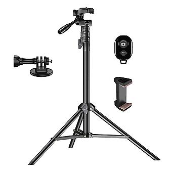 Wide CompatibilityStandard 1/4 inch screw connection, with a stretchable phone clip and a sports camera mounting adapter, this selfie stick tripod is compatible with digital camera, mirrorless camera, action camera, smartphones, LED video light, ring light, etc.
