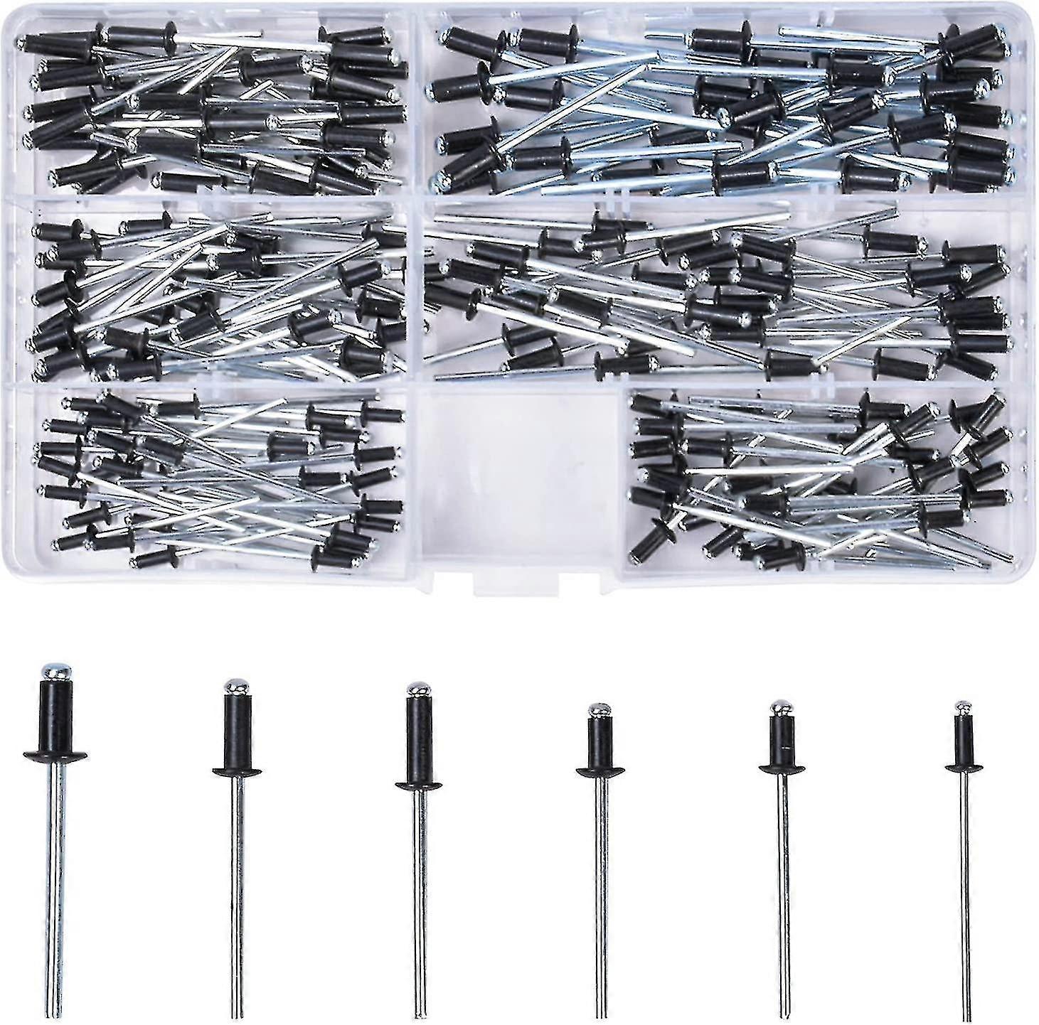 Blind Rivets, 180pcs Aluminum Blind Rivets, Black Rivet Assortment, Open Dome Head Blind Rivets, Sta