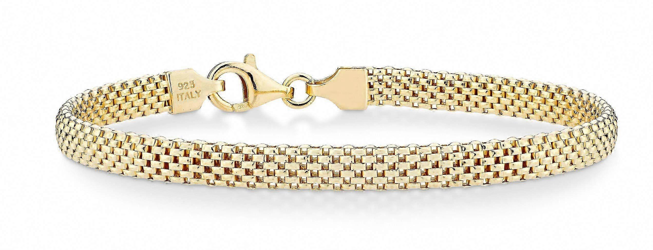18K Gold Over Sterling Silver 6mm Mesh Link Chain Bracelet for Women, 925 - 8 Inches Length (Average Women's Size)