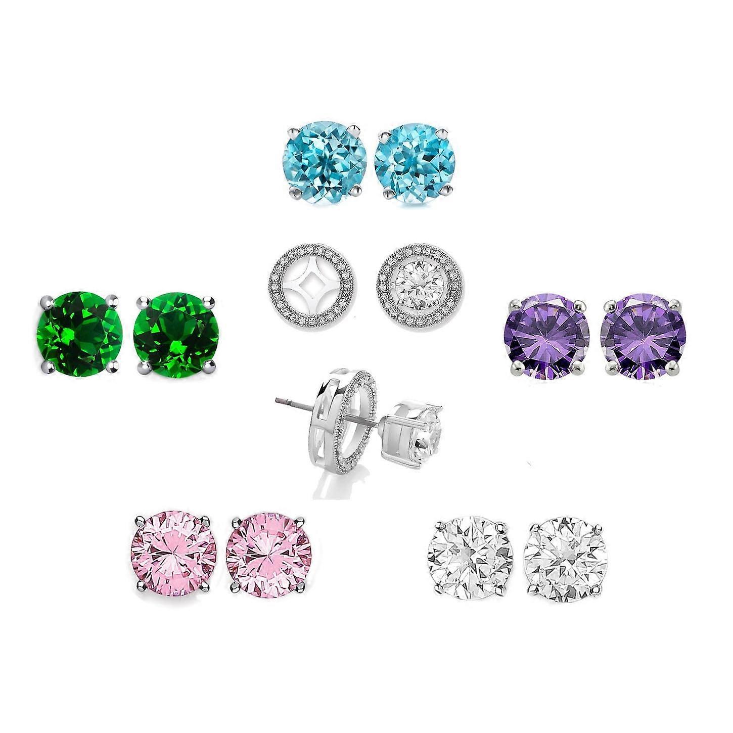 18K White Gold Element Halo Stud Earrings Set 5 Pairs Assorted Colors
