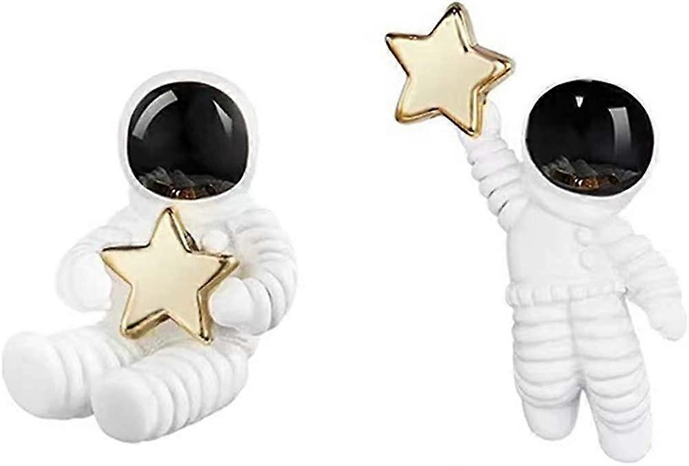 18K Gold Plated 3D Irregular White Astronauts Spaceman Golden Star Charm Stud Earrings - -