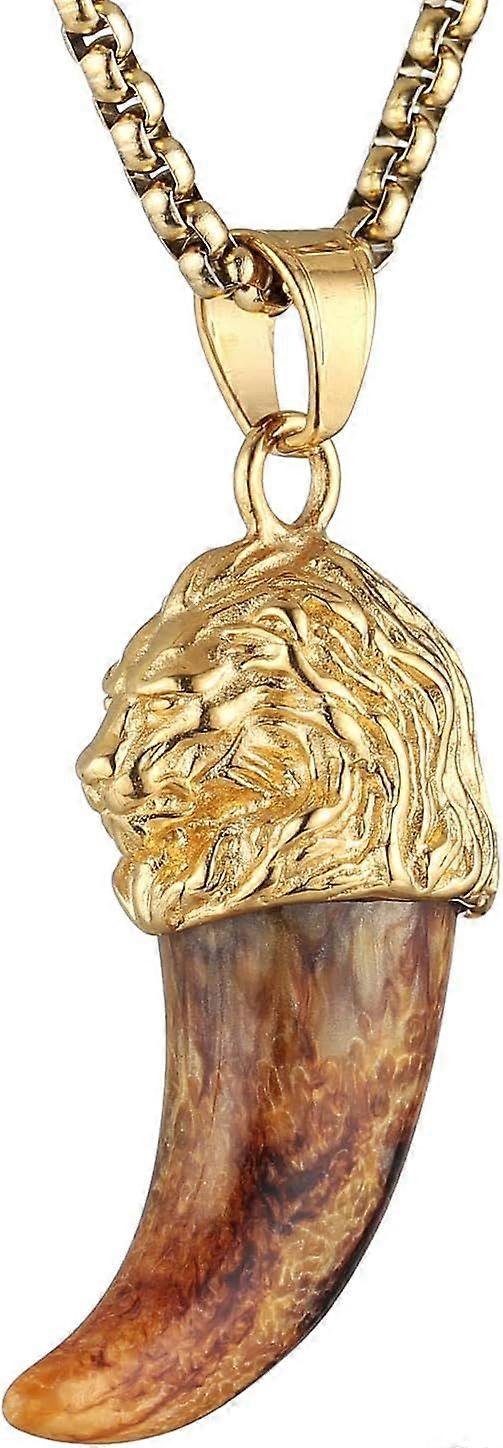 18K Gold Plated Lion Head Necklace Pendant for Men Stainless Steel Hip Hop Rock Lion King Necklaces Charm Animal Amulet Jewelry