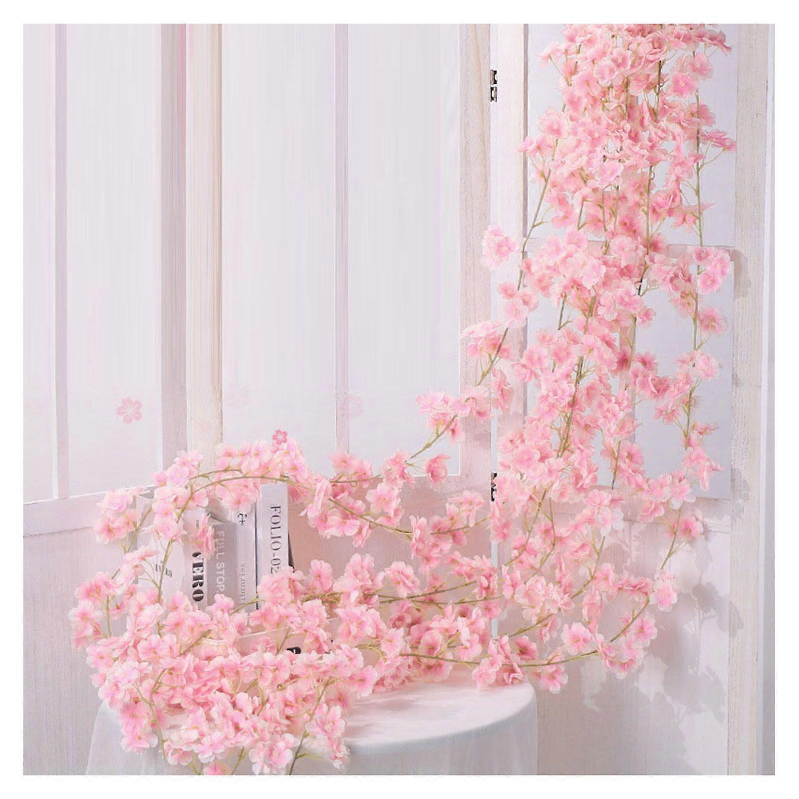 1.8m 256 Simulated Artificial Sakura Flower Garland Hanging Vines for Spring Home Room Wedding Party Decor Light Pink