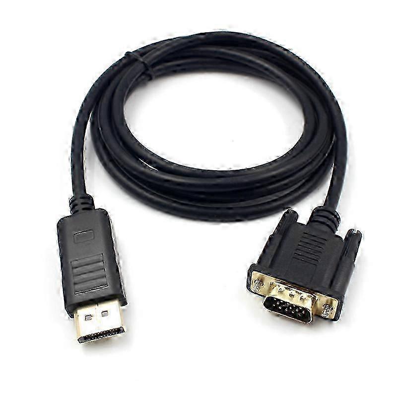 1.8m DisplayPort DP to VGA Male Adapter Converter Cable Gold-Plated Cord UniversalP20211224184 FG05 1.8m DisplayPort DP to VGA Male Adapter Converter Cable Gold-Plated Cord Universal Connects a DisplayPort (DP, DP++, DisplayPort++) equipped computer to display with VGA input port. Supports up to 1080P, 1920 x 1200 reduced blanking video resolution, EDID pass-through from PC source to display. Transmits high-definition video from your computer to a monitor for video streaming; Connect and configure your monitor for an Extended Desktop or Mirrored Displays. DisplayPort connector with latches provides a secure connection with a release button that must be depressed before unplugging. Gold-plated connectors, tinned copper conductors, and foil & braid shielding combine together to provide both superior cable performance and reliable connectivity. Specification: Interface: DP interface Cable length: about 1.8 (m) Color: Black Connector: DisplayPort male to VGA male Package included: 1*DP to VGA adapter cable