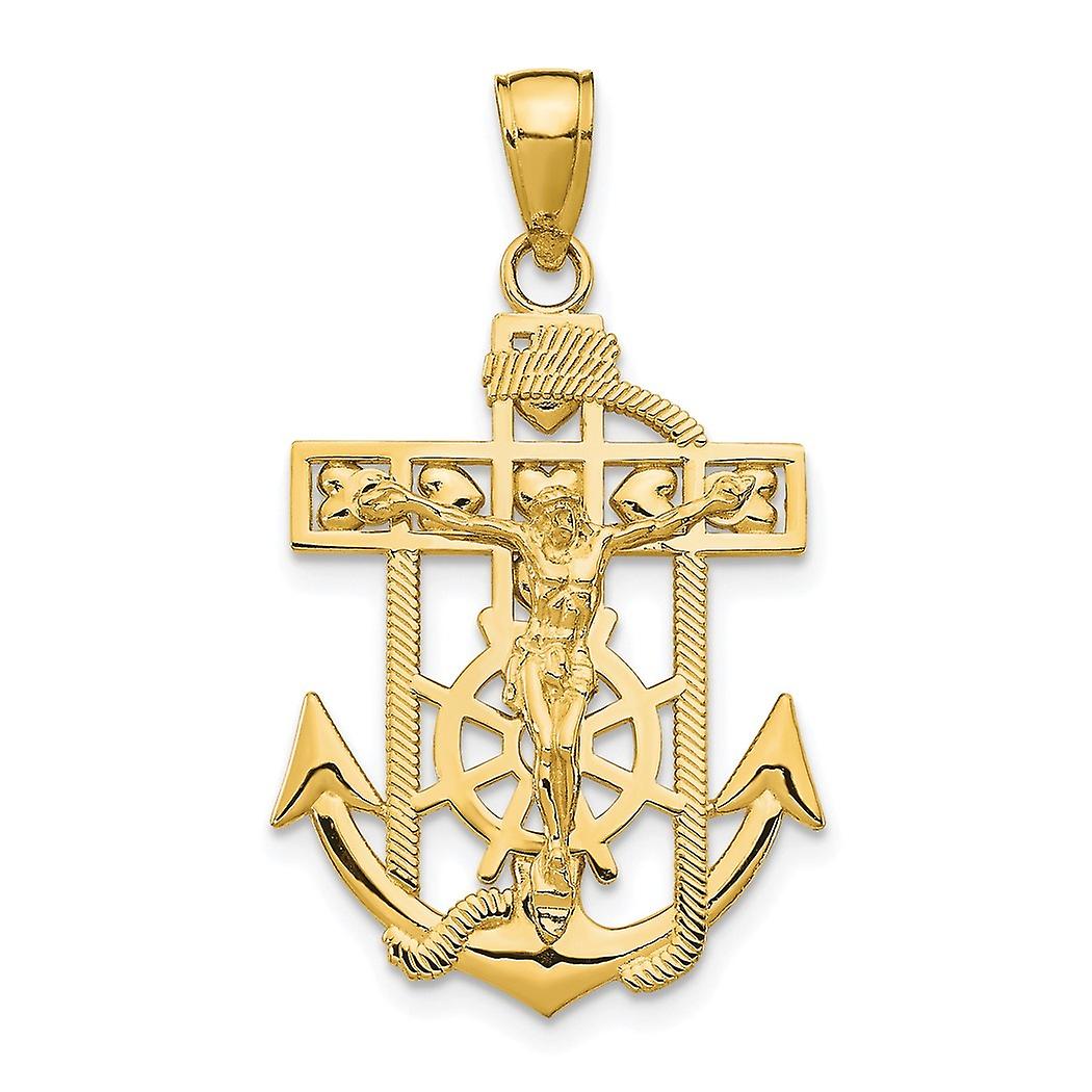 18mm 10k Gold Polished and Textured Mini Mariners Crucifix Pendant Necklace-Pendant for Women