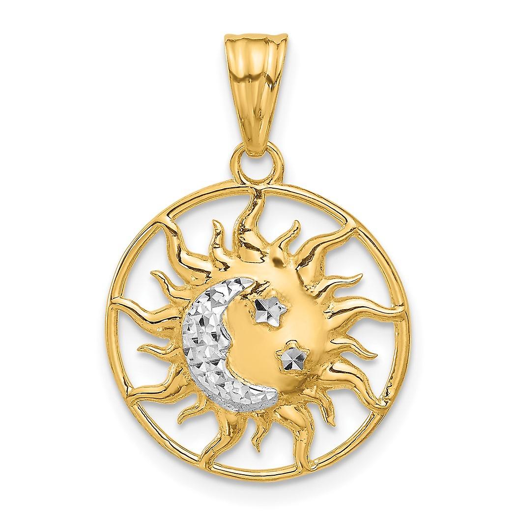 18mm 14k and White Rhodium Sparkle Cut Sun Celestial Moon Stars Pendant Necklace-Pendant for Women
