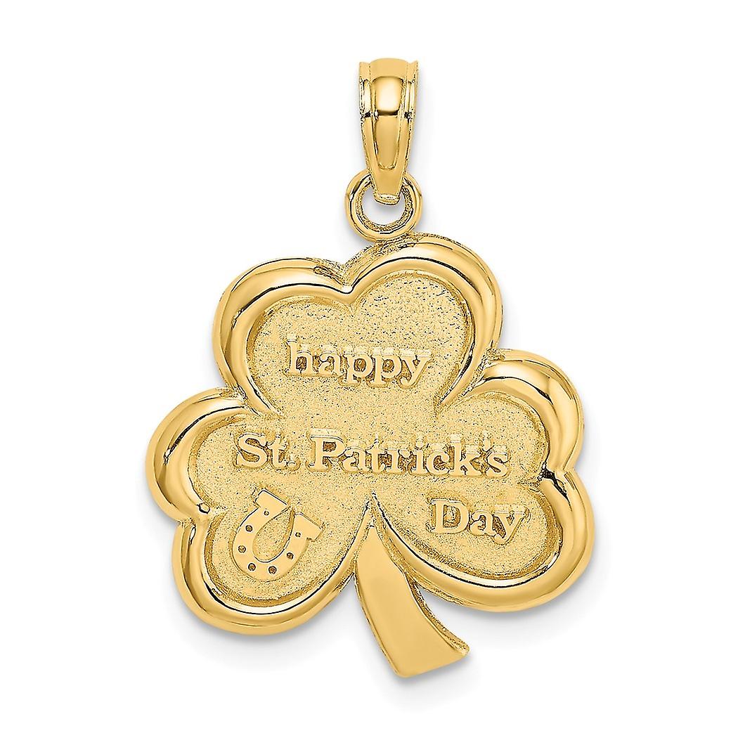 18mm 14k Gold Polished Solid Satin Happy St. Pattys Day Clover Pendant Necklace-Pendant for Women
