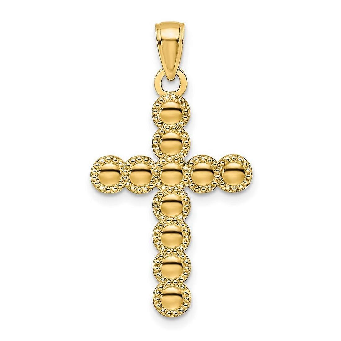 18mm 14k Solid Yellow Gold Polished and Beaded Circles Religious Faith Cross Pendant Necklace-Pendant for Women