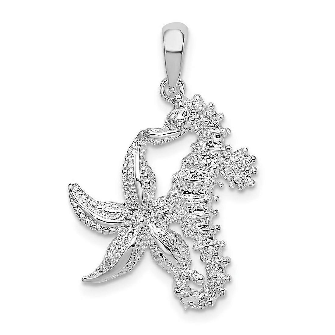 18mm 925 Sterling Silver Rhodium Plated Polished Starfish and Seahorse Pendant Necklace-Pendant for Women