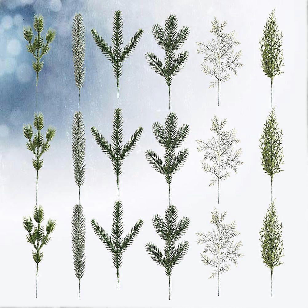 18pcs Simulation Christmas Leaf Ornaments Artificial Lifelike Pine Neddle Cypress Leaf Plants Branches for Home Wedding Party Decor