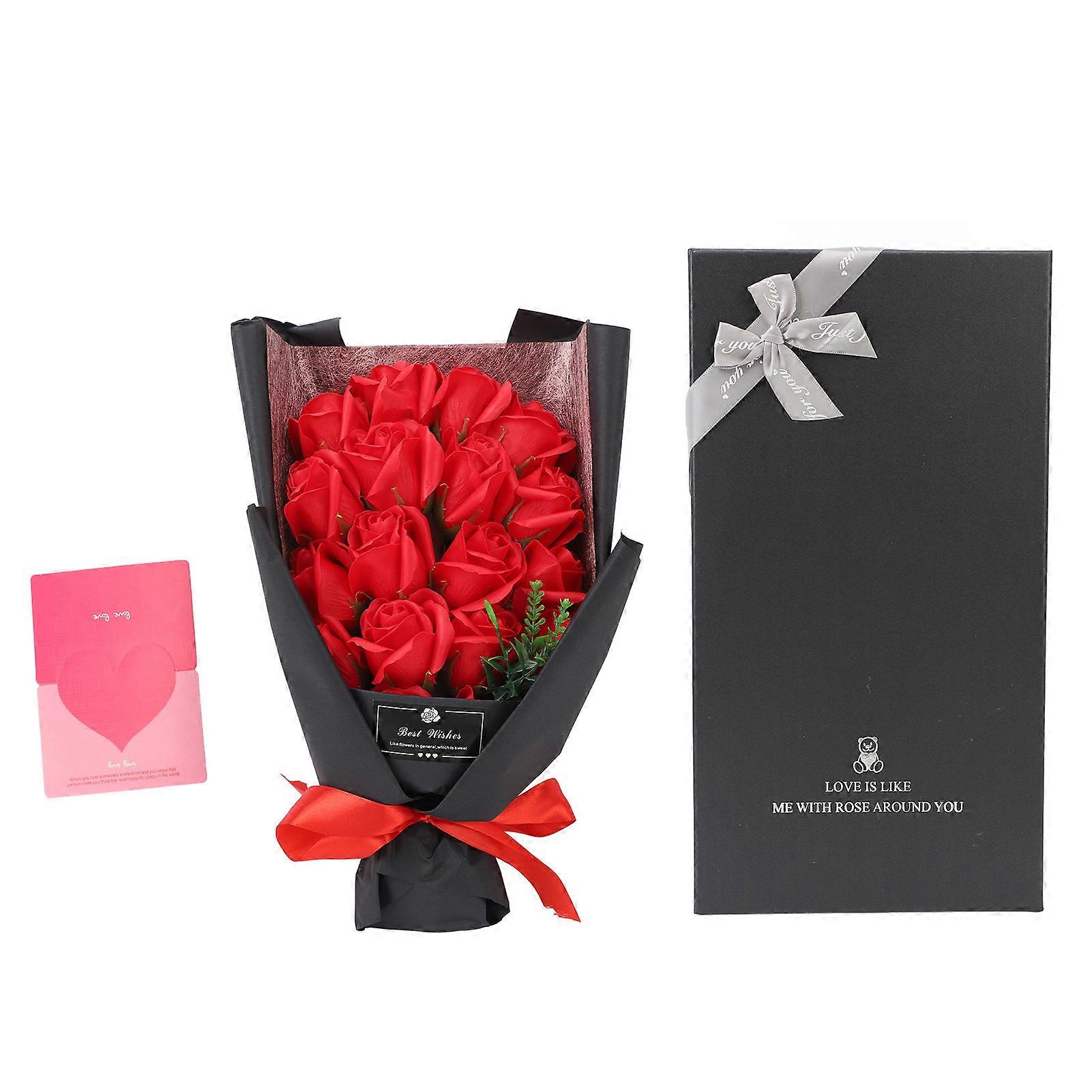 18pcs Artificial Rose Flower Realistic Roses Bouquet Artificial Flower Plastic Fake Roses for Valentine's Day Anniversary Wedding Birthday Bright Red