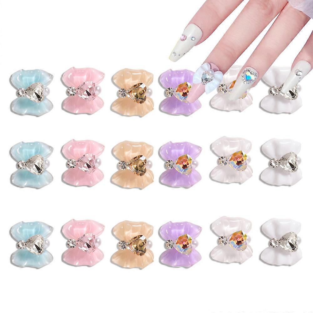 18pcs 3D Bow Nail Charms, Crystal Heart Bowknot Nail Rhinestones, Shiny Diamonds Nail Art DIY