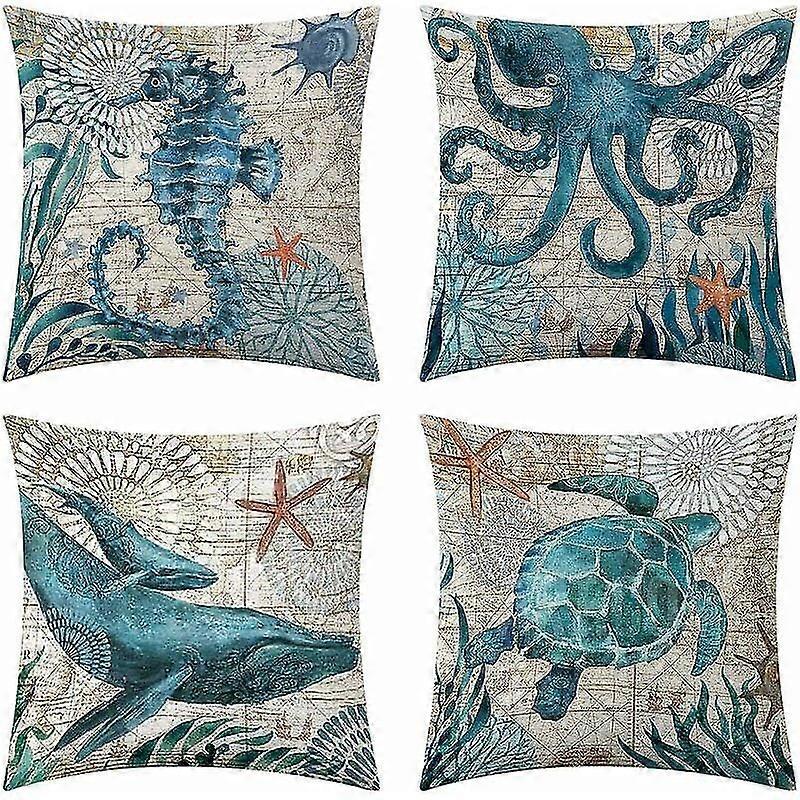 (18x18 Inches, Blue) Outdoor Patio Furniture Waterproof Pillows, Mediterranean Style Pillow Cases, Coastal Decor Cushion Covers For Sofas Living Room-