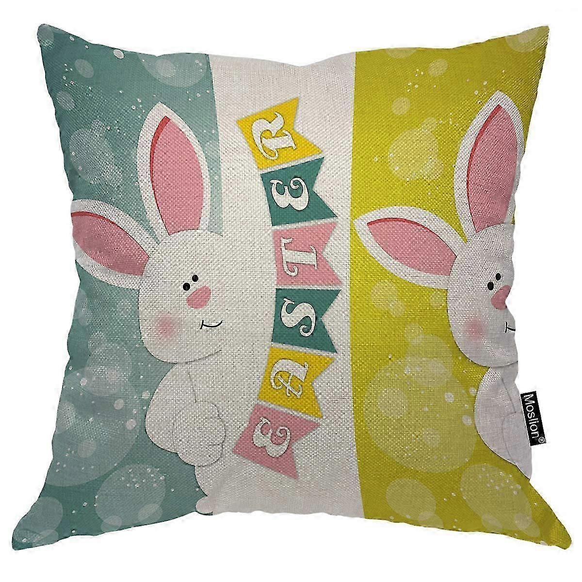 18x18 Inch Bunny Polka Dot Pillow Cover - Cotton Linen Cushion Case for Sofa Decor