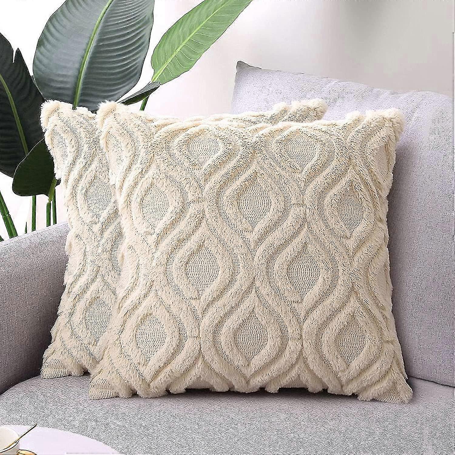 Size:2 sizes are available, 18*18inch/45*45cm and 20*20inch/50*50cm.These soft plush decorative pillows covers for home decor can not only meet your daily needs but also bring you a sense of chicness.Please note that this product only includes pillow covers without inserts.^Soft and Durable Material:Our boho throw pillow covers are made of faux fur and velvet fabric,which touches particularly soft and cozy. Due to this durable and thick material, these luxury style velvet pillow covers can functional for all seasons.With these skin-friendly square throw pillow cases,you would feel more comfortable when lying or leaning on the sofa,couch,office chair or bed.^Special Design:With the soft short plush wool material,our farmhouse pillow covers have the luxurious diamaond texture with 3D patterns.This shape looks quite fabulous and can give new life to your old pillows.A hidden zipper in the same color is on the edge side of this accent pillows covers.^Suitable Occasions:This textured throw pillows covers can be nicely matched with a variety of decoration styles,such as living room,bedroom,cars,chair,office and coffee shop.This white throw pillow is also perfect as a gift to send to your family or friends on Housewarming,Thanksgiving,Christmas,Mothers day and Fathers day.^ Care:Machine wash with cold water, gentle cycle and tumble dry low separately.Hand wash and air dry.Long invisible zipper is designed for easy insert changing.Please do not bleach and iron.These textured throw pillows will be a new look after washing.^