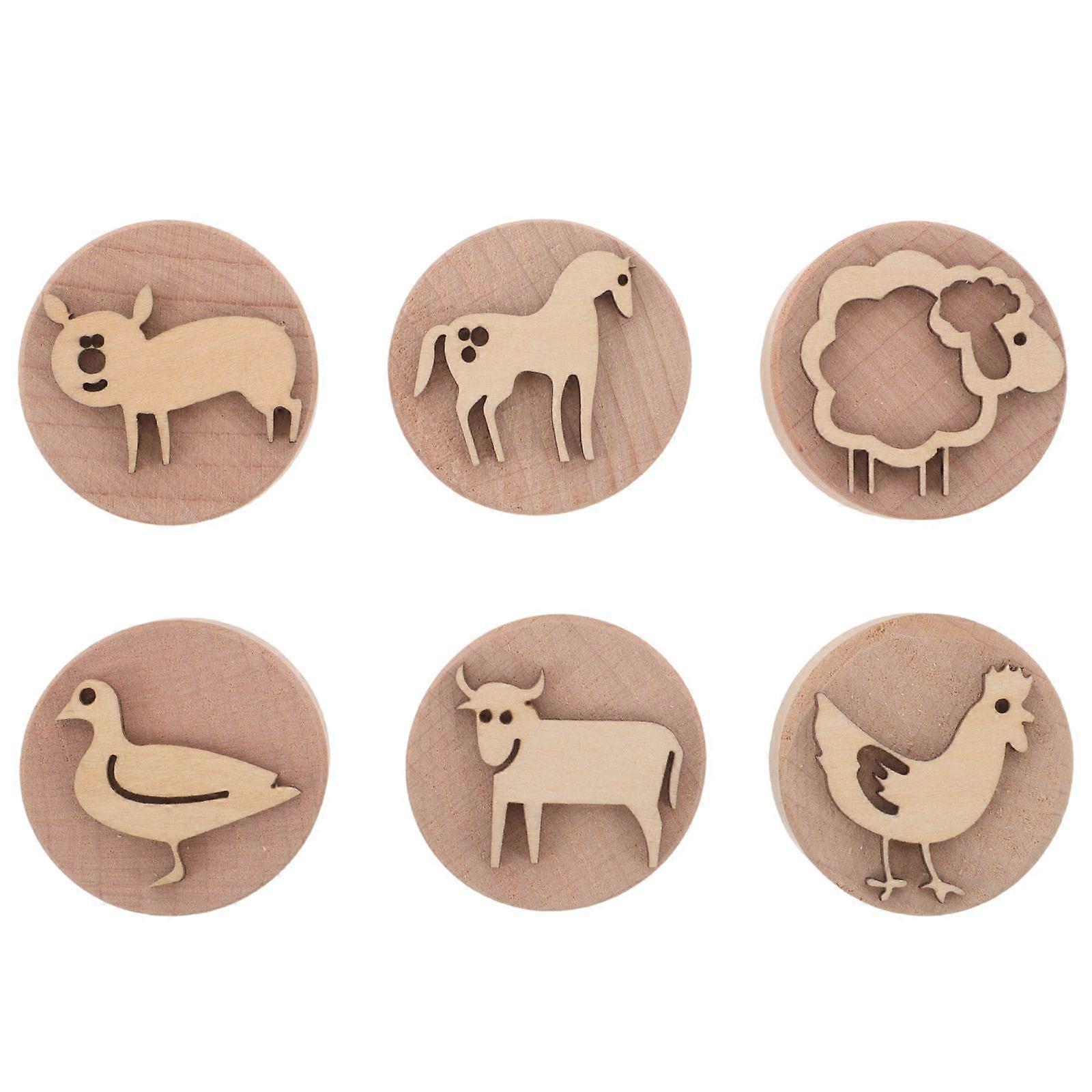 19pcs Kids Stamps: Children Wood Stamp Clay Toy Set - Cute Animal Stampers For Toddler - Early Development Learning Bloc For Party School Art Projects