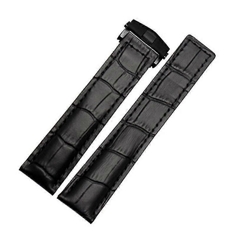 A 19-22mm Genuine Leather Black Red Black Watchband Bracelet and Fold Buckle Strap for a Tag Heuer Men's Wristwatch