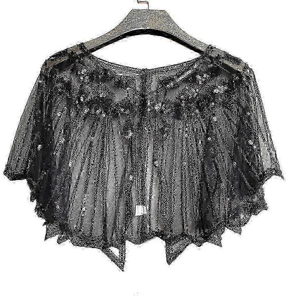 1920s Flapper Costume Shawl Wraps Sequins Glitter Beaded Evening Cape Bridal Shawl Bolero Flapper Cover Up-Yvan