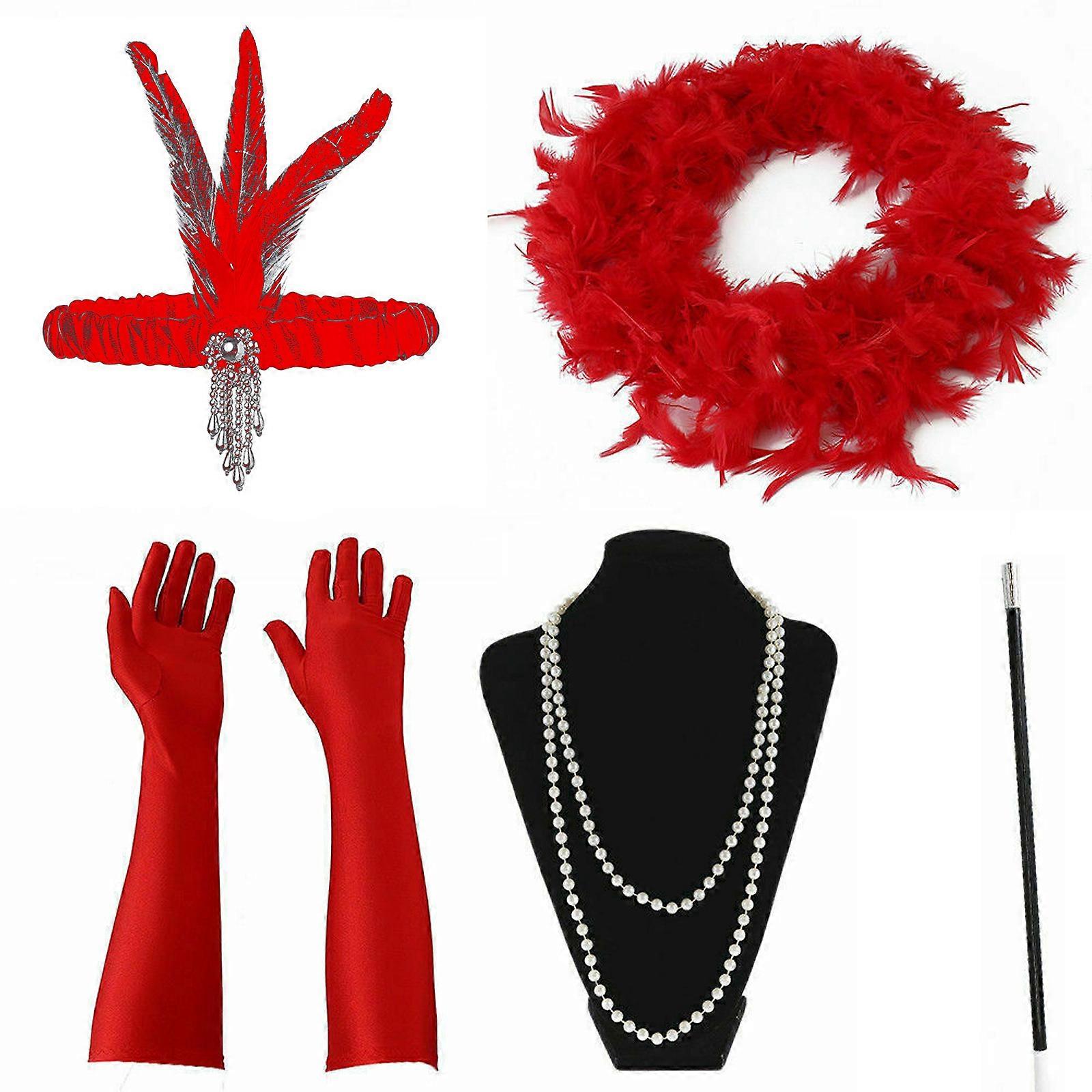 1. Package Includes: 1 pcs Headband, 1pcs Necklace, 1 pair of Plain long satin gloves, 1 pair of Earrings; 1 pcs Cigarette holder.