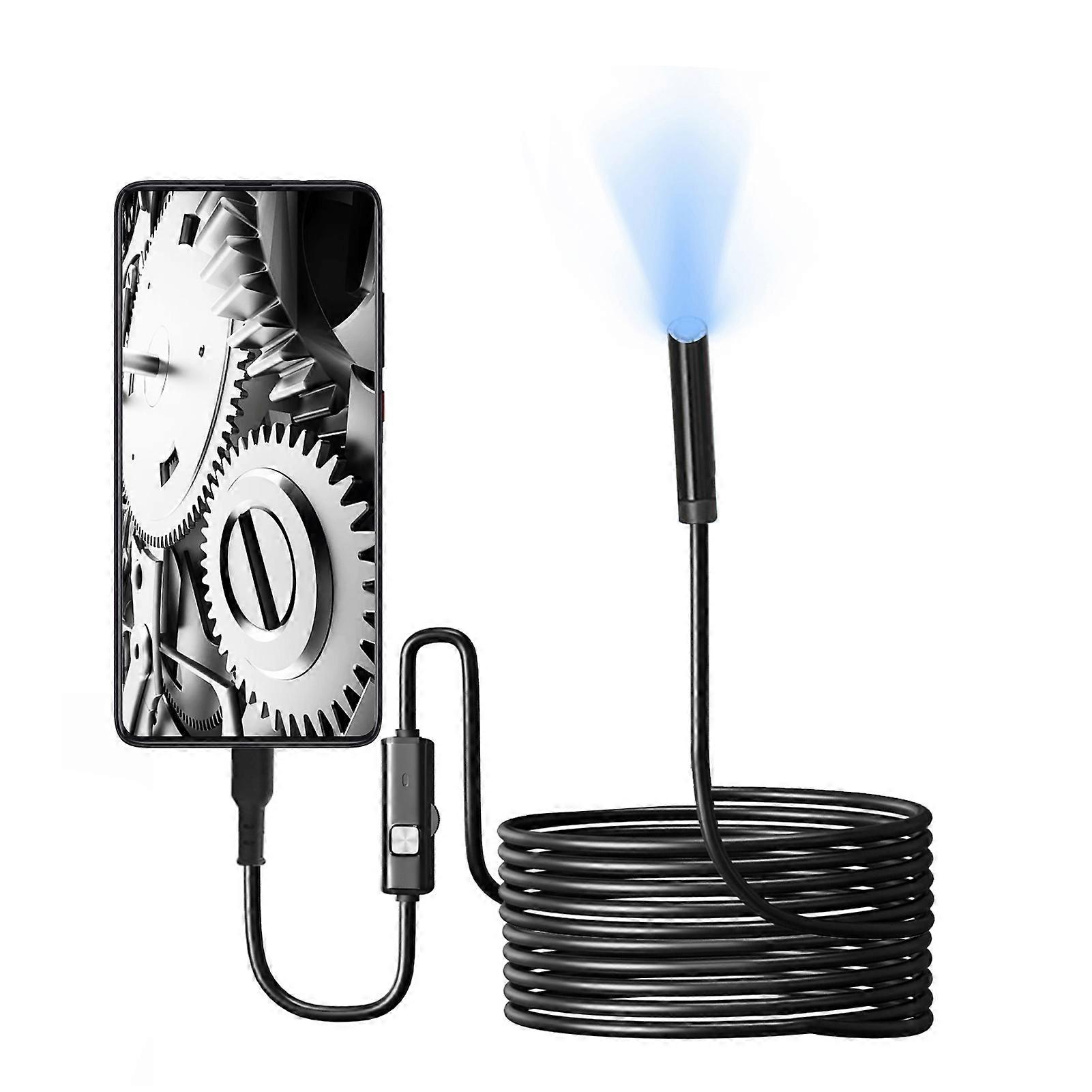 This industrial endoscope is equipped with a high-definition camera. It is powered by a mobile phone, to which it sends a signal. The mobile phone then connects to the device and displays the image on an app, which supports both photo and video functions. This device features a small-diameter high-definition camera with LED auxiliary lighting. The camera uses a high-sensitivity chip, allowing it to function normally even in dark working environments.