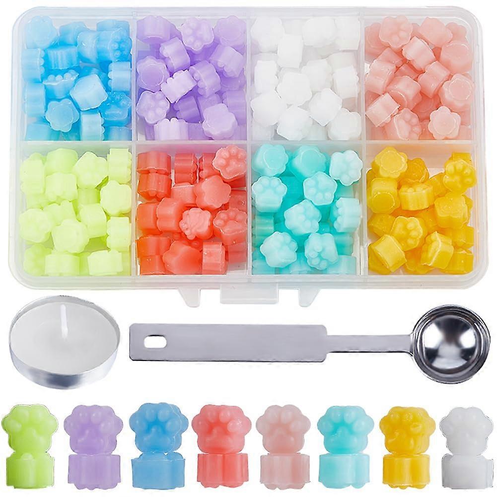 192pcs 8 Colors Wax Sealing Beads Paw Print Wax Seal Beads Sealing Wax Particles with Stainless Steel Spoon and Candle for Retro Christmas Cards Weddi